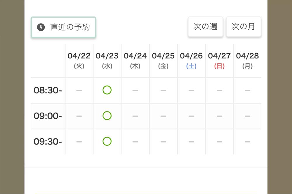 | 8:15〜17:00 | - | ◯ | ◯ | ◯ | ◯ | ◯ | - |